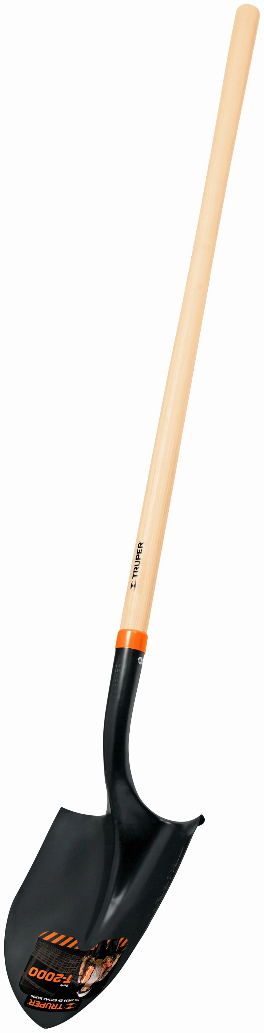 Truper ásó, 21cm hőkezelt acél fej, 114cm lakkozott fa nyél, 142cm hosszú